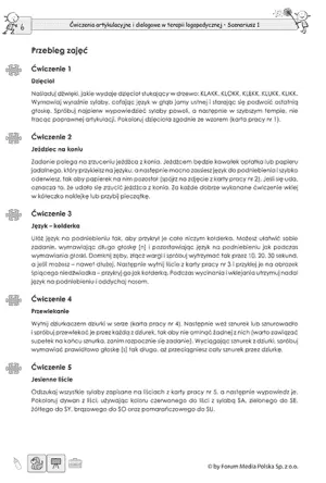 - Różnorodność ćwiczeń: Zawiera ćwiczenia artykulacyjne, dialogowe, graficzne oraz motoryczne, które rozwijają nie tylko poprawną wymowę, ale i umiejętności komunikacyjne.