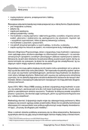 Nauczyciel, mając pod opieką edukacyjną wielu uczniów, nie zawsze jest w stanie opracować dla każdego indywidualny schemat nauczania, który praktycznie będzie niwelował wszystkie trudności dziecka. Opracowania takie jak to, wyręczają opiekuna edukacyjnego i oferują kompleksowy zestaw ćwiczeń, które skupiają się na problematycznych dysfunkcjach. Dzięki temu nauczyciel może skupić się na wszystkich uczniach w równym stopniu, dostosowując elastycznie otrzymane narzędzia, które w jego rękach stają się nieocenioną pomocą wychowawczo-rozwojową.