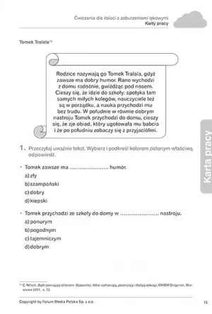 Zaburzenia lękowe wpływają na osiągane sukcesy szkolne ucznia, dlatego warto systematycznie stymulować jego postępy poprzez praktyczne ćwiczenia angażujące funkcje percepcyjno-motoryczne dziecka.