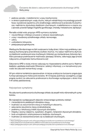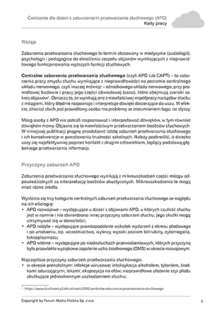 W niniejszej publikacji szczególną uwagę pragniemy zwrócić na zaburzenia przetwarzania słuchowego występujące u dzieci klas I–III szkoły podstawowej. E-wydanie zostało opracowane przez specjalistów z zakresu pedagogiki i terapii, bazując na aktualnej wiedzy naukowej i praktycznym doświadczeniu. Proponowane ćwiczenia angażują funkcje percepcyjno-motoryczne, pomagając dzieciom lepiej rozumieć świat dźwięków i radzić sobie z trudnościami w szkole oraz w codziennym życiu.