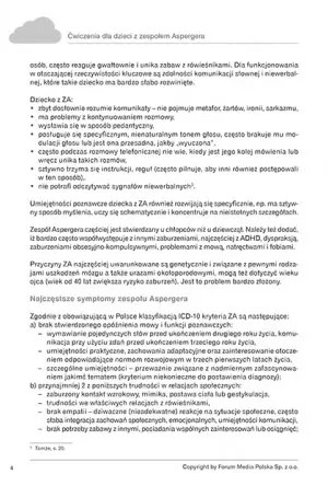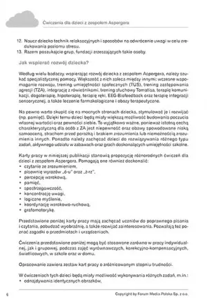 W publikacji znajdziesz 48 rozmaitych ćwiczeń dla klas I-III, które pobudzą dziecko z zespołem Aspergera do kreatywnego myślenia, a także rozwiną u niego spostrzegawczość, uwagę, umiejętność czytania ze zrozumieniem, grafomotorykę, pamięć i koordynację wzrokowo-ruchową.