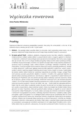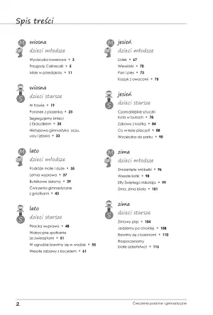 Niniejsze opracowanie to istna skarbnica gotowych pomysłów, które nie tylko uatrakcyjnią Twoje zajęcia, ale przyczynią się do poprawnej postawy ciała dzieci i pobudzą ich sympatię do zdrowego trybu życia. Każda karta na samym początku określa miejsce ćwiczeń, niezbędne narzędzia i dokładny opis wzbogacony ilustracjami poglądowymi. Niezwykle pomocne jest uwzględnianie pór roku w poszczególnych zabawach, dzięki czemu cały rok szkolny pod względem ćwiczeń przebiegnie harmonijnie i zróżnicowanie.