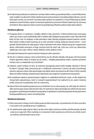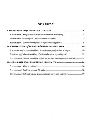 2. Przeczytaj uczniom tytuł książki: Wojtek. Żołnierz bez munduru. Zadaj pytanie problemowe: Jak może wyglądać taki żołnierz? Uprzedź te dzieci, które poznały już wcześniej historię Wojtka (mogły usłyszeć ją w przedszkolu, poznać ją od starszego rodzeństwa itp.), by dały szansę wypowiedzieć się rówieśnikom, którzy stykają się z nią pierwszy raz. Na koniec podsumujcie wasze rozważania i opiszcie sylwetkę żołnierza bez munduru. Czy ten opis pasuje do niedźwiedzia? Działania główne: 1. Zapytaj dzieci, czy chcą poznać losy Wojtka? Często w szkole dzieci kierują się wskazaniami nauczyciela, podążając za jego wytycznymi. Ważne, by już od pierwszej klasy dzieci uświadamiały sobie, że nie uczą się w szkole dla nauczyciela, ale dla siebie i swojego życia, że podejmują w szkole wiele decyzji, które są autonomiczne. 2. Przeczytajcie razem tę historię. Podziel tekst na fragmenty – te, które przeczytasz, które pominiesz i które opowiesz dzieciom. Zagospodaruj około 10 minut na spotkanie z książką.