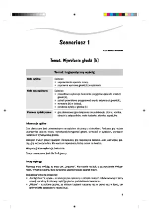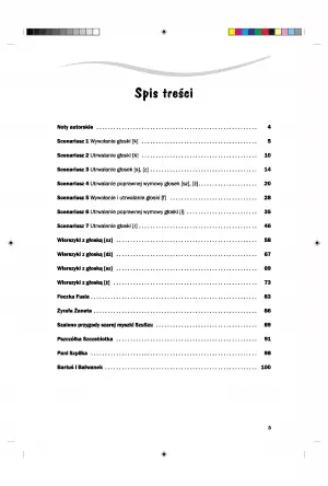Proponowana pozycja zawiera 7 scenariuszy zajęć, ćwiczących określone głoski, a także wiersze i opowiadania, razem z instrukcją, w jaki sposób możemy ćwiczyć z pomocą wierszy i opowiadań.