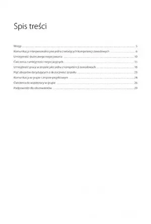 Broszura odsłania przed nami tajemnice udanej komunikacji i pokazuje, co możemy zrobić, by nabyć dodatkowe, ważne kompetencje. Poza teorią, podaną w interesujący sposób, znajdziesz w niej ćwiczenia z umiejętności negocjacyjnych, ćwiczenia dzięki którym poprawisz zdolność współpracy w grupie, podpowiedzi dla obserwatorów, a także miejsce na notatki, które wykorzystasz w dowolnym celu.