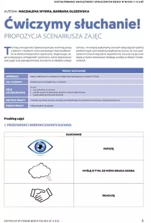 Prowadzący wita uczniów podając im rękę. Nawiązuje kontakt zadaniowy i emocjonalny inicjując rozmowę: Co miłego spotkało mnie w ostatnich dniach? Wyjaśnia dzieciom cel i przebieg zajęć.