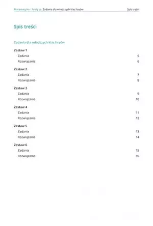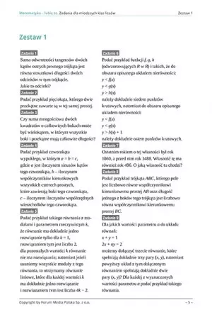 Opracowanie ma na celu szybką adaptację do nowych zagadnień matematycznych z programu edukacji licealnej. Oprócz tego zawiera elementy, pozwalające na wyrównanie ewentualnych braków i niedociągnięć ucznia po szkole podstawowej. Karty zadań sprawdzą się jako materiał dodatkowy do głównych zajęć lekcji matematyki, materiał wyrównawczy i materiał samodoskonalający ucznia do samodzielnej pracy w domu.