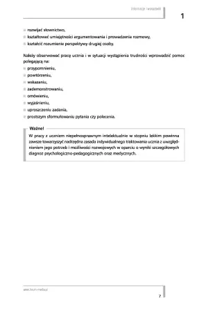 Publikacja przygotowana z myślą o uczniu z niepełnosprawnością intelektualną w stopniu lekkim, zawierająca zestaw praktycznych ćwiczeń z zakresu: pracy z tekstem, wypowiedzi pisemnych i ustnych, procesów poznawczych oraz psychoedukacji.