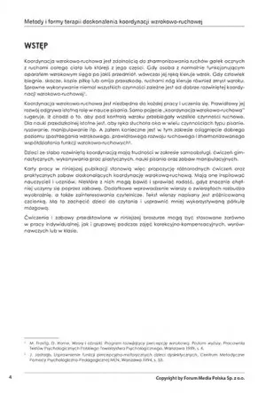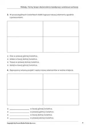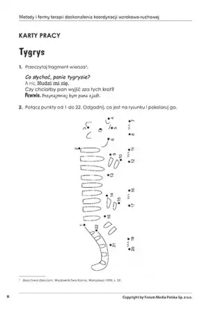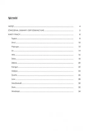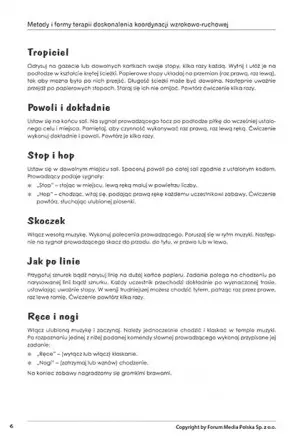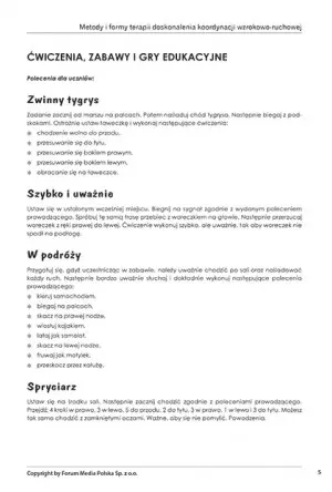 Zeszyt ćwiczeń przeznaczony jest dla dzieci w klasie 1-3. Podzielony został na dwie części: ruchową, która zawiera 15 ćwiczeń, takich jak: Zwinny tygrys, Szybko i uważnie, W podróży i Spryciarz oraz część ćwiczącą motorykę małą.
