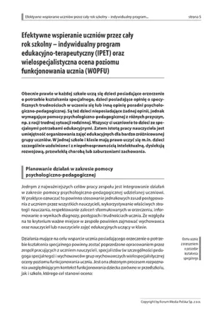 - Praktyczne wskazówki i wytyczne – Poradnik zawiera informacje na temat opracowywania IPET i WOPFU oraz planowania wsparcia psychologiczno-pedagogicznego, co ułatwi Ci realizację obowiązków.