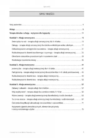 Wśród ćwiczeń znajdują się między innymi: składanie obrazków z kilku części, puzzle, łączenie elementów strzałkami i ćwiczenia w wykonywaniu poleceń.