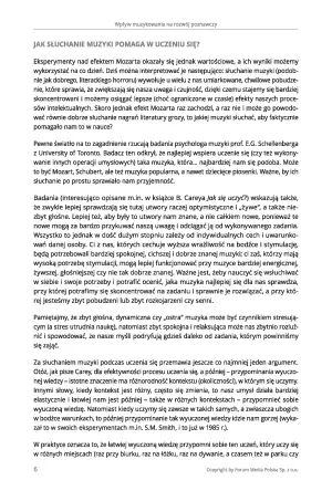 Pamiętajmy, że zbyt głośna, dynamiczna czy „ostra" muzyka może być czynnikiem stresującym (a stres utrudnia naukę), natomiast zbyt spokojna i relaksująca może nas zbytnio rozluźnić i spowodować, że nasze myśli podryfują gdzieś daleko od zadania, którym powinniśmy się zająć.