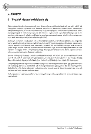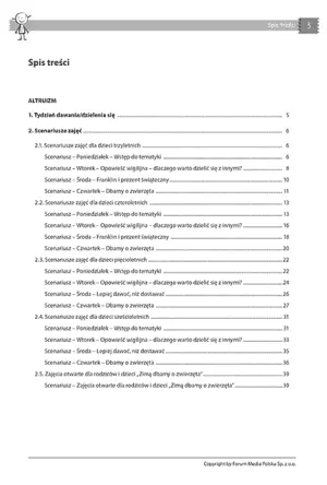 Dzięki tej publikacji, nauczyciele i wychowawcy zyskają pełen zestaw narzędzi do rozwijania altruizmu i pozytywnych emocji u dzieci. Zajęcia są przemyślane i zaplanowane tak, by angażować dzieci w różnorodne formy aktywności – od zabaw ruchowych, przez prace plastyczne, aż po codzienne akty dzielenia się. To doskonała okazja, by nauczyć maluchy, jak wielką radość daje pomaganie innym i dzielenie się tym, co mamy.