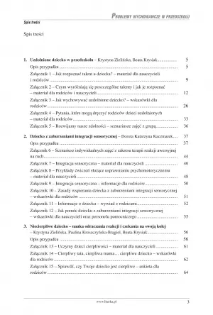Mimo że poradnik jest skierowany do opiekunów grup przedszkolnych, stanie się praktyczną pomocą dla rodziców. Szczególnie jeśli pociecha wykazuje nadpobudliwość ruchową, emocjonalną lub zaburzenia sensoryczne. Odpowiednie podejście do dziecka, które dopiero rozwija swoje emocjonalne i ruchowe postrzeganie świata, może być kluczem do jego skupienia, koncentracji i efektywnego przyswajania wiedzy. Oprócz tego będzie świadome swoich potrzeb i będzie wiedziało, jak najlepiej je egzekwować, bez naruszania zasad i norm społecznych lub wychowawczych, wyznaczonych przez rodziców.