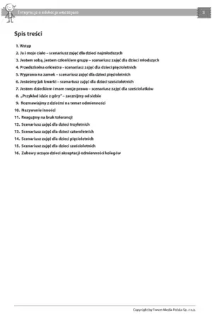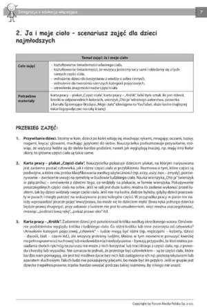 E-wydanie to zestaw gotowych scenariuszy zajęć i zabaw dla dzieci w różnym wieku, których celem jest kształtowanie świadomości własnego ciała, nauka szacunku dla drugiego człowieka i akceptacji różnorodności. Posiada ćwiczenia relaksacyjne i wyciszające dla dzieci.