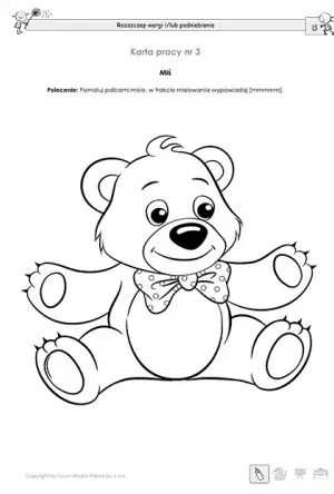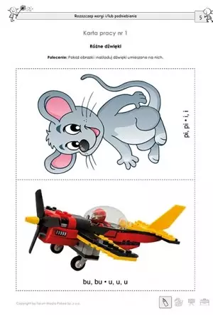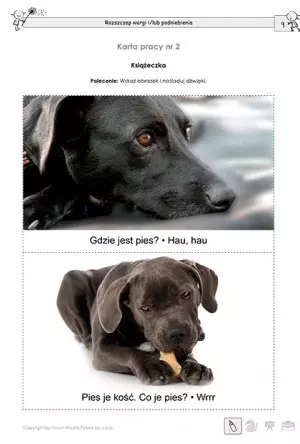 Znajdziesz tu takie zadania, jak: układanie zdań z rozsypanki wyrazowej, ćwiczenia oddechowe, naśladowanie różnych dźwięków, memory – gra pamięciowa oraz układanie puzzli. Na końcu publikacji znajduje się miejsce na notatki, gdzie możemy notować spostrzeżenia, a także informacje o „kamieniach milowych” i postępach dziecka.