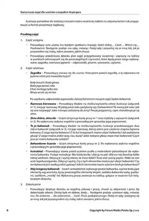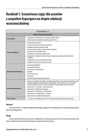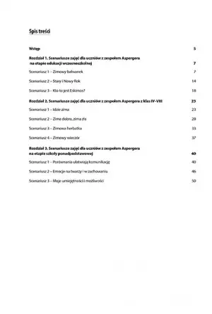 W teczce pracy znajdziesz 10 scenariuszy zajęć: 3 scenariusze dla uczniów na etapie edukacji wczesnoszkolnej, 4 dla klas IV-VIII i 3 scenariusze dla uczniów szkół ponadpodstawowych. Dzięki zaproponowanym ćwiczeniom uczeń będzie mógł nabyć takie umiejętności jak witanie się i żegnanie z innymi, rozwinie swoje słownictwo i koordynację wzrokowo-ruchową, poszerzy swoje doświadczenia plastyczne, usprawni myślenie przyczynowo-skutkowe oraz umiejętność czytania ze zrozumieniem i stopniowo będzie wydłużać czas koncentracji uwagi.