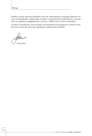 Współpraca z dziećmi nieśmiałymi jest niezwykle wymagająca. Znalezienie wspólnej płaszczyzny „ku ośmieleniu” wymaga czasu i nawiązania relacji opartej na zaufaniu. Znajdując taką osobę w terapeucie, uczniowie łatwiej mogą otworzyć się na świat i zrozumieć swoje emocje. Podobnie jest z uczniami z ADHD, którym przyswajanie wiedzy może przychodzić z trudnością, a środowisko nie do końca pojmuje ich potrzeby i przyczyny zachowania. Opracowanie pełni funkcję kompleksowej pomocy dla obu grup uczniów, a a każda z jego części dostosowana jest dostosowana poziomem do umiejętności ucznia.