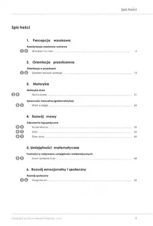 Karty ćwiczeń nie tylko zawierają krok po kroku organizację i przebieg zajęć, ale wskazują główne cele, jakie powinny zostać zrealizowane. Dzięki temu nauczyciel/opiekun wie, na czym skupić swoją uwagę i kłaść nacisk podczas wspólnej zabawy.