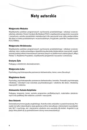 Książka w umiejętny sposób przedstawi Ci podstawy współpracy i nawiązywania relacji wychowawczej z dziećmi. Niekiedy nie jest to łatwe, zważając na różne osobowości uczniów oraz ich pochodzenie środowiskowe czy kulturowe. Opracowanie pomaga w pokonaniu barier, dzięki czemu zwiększysz efektywność swoich metod nauczania i przyczynisz się do rozwoju społeczno-emocjonalnego swoich uczniów.