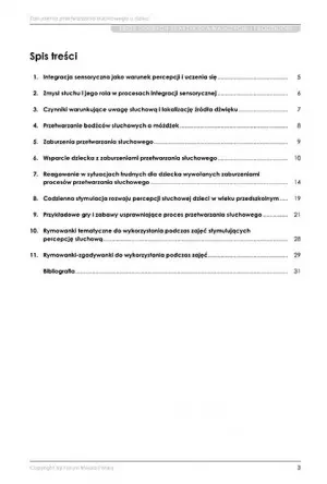 Niniejsze opracowanie można określić jako „pigułkę wiedzy wraz z rozwiązaniami” z zakresu zaburzeń procesów przetwarzania słuchowego. Będzie idealną pomocą dydaktyczną dla nauczycieli, którzy przedstawione informacje mogą wykorzystać podczas rozmów z rodzicami lub opiekunami dzieci, wskazując na ewentualne rozwiązania indywidualnych problemów słuchowych przedszkolaka. Prócz tego zawiera przykładowe zabawy i rymowanki tematyczne, które można wykorzystać podczas zajęć, jednocześnie uatrakcyjniając wspólną naukę czy ćwiczenia.