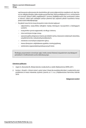 Zamieszczone w tej publikacji scenariusze zajęć dla uczniów słabosłyszących odnoszą się kolejno do trzech etapów edukacji. Ich adresatami są dzieci z klas I–III i IV–VIII szkoły podstawowej oraz młodzież ze szkół ponadpodstawowych. To propozycja ćwiczeń, zabaw i zadań do wykorzystania w pełni