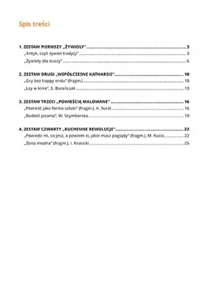 Dodatkowo przy niektórych pytaniach uwzględniono punktację, która wskaże uczniowi ewentualne braki, swojej dedukcji lub innych elementów konstruujących wypowiedź. Zróżnicowane tematy i formy literackie znacznie uatrakcyjniają odbiór treści, a także przygotowują ucznia na każdy prawdopodobny scenariusz, jaki może pojawić się na egzaminie dojrzałości.